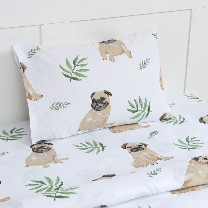 Постельное бельё Этель 1,5 сп «Мопсы» 143×215 см, 150×214 см, 50×70 см -1 шт, 100% хлопок, бязь