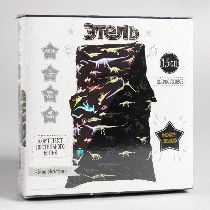 Постельное бельё Этель 1,5 сп «Dino skeleton» 143×215 см, 150×214 см, 50×70 см -1 шт, 100% хлопок, бязь