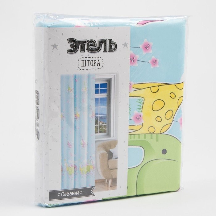 Портьера Этель «Саванна» без держателя, цвет голубой, 110×260 см, блэкаут, 100% полиэстер
