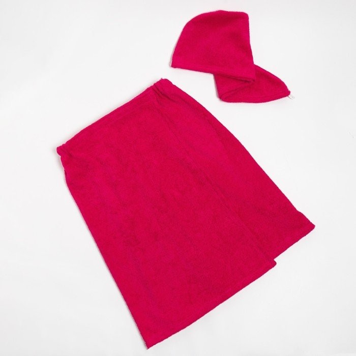 Набор для сауны Экономь и Я: полотенце-парео 68*150см + чалма, цв.ярко-розовый,100%хл,320 г/м2