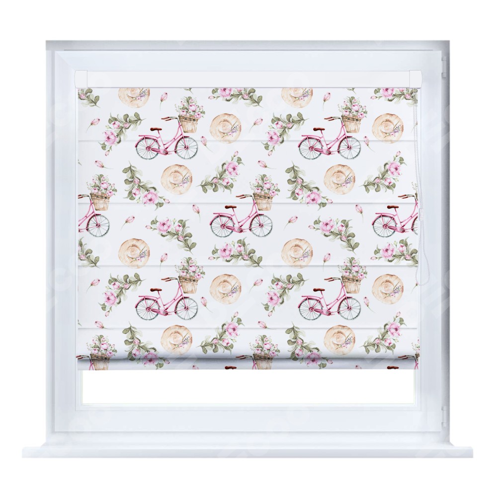 Римская штора «Кортин» на створку «Розовый велосипед»