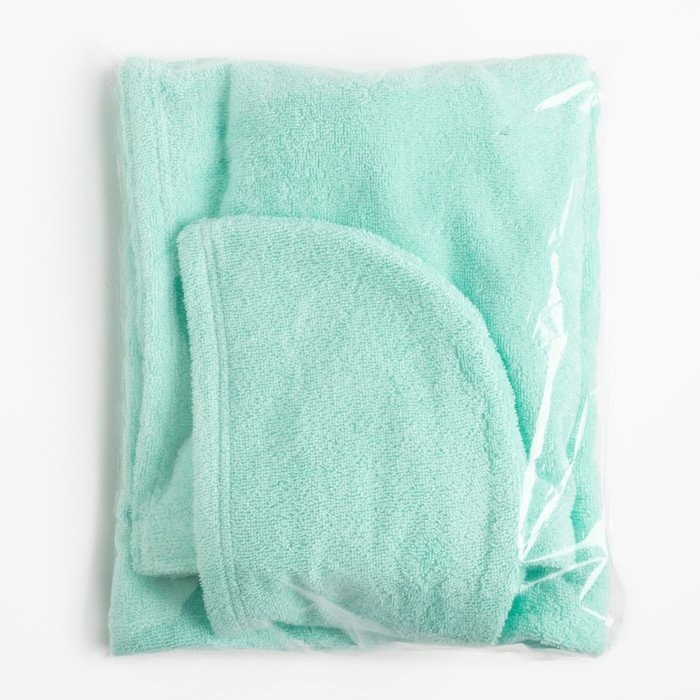 Набор для сауны Экономь и Я: полотенце-парео 68*150см + чалма, цв.св-бирюзовый,100%хл,320 г/м2