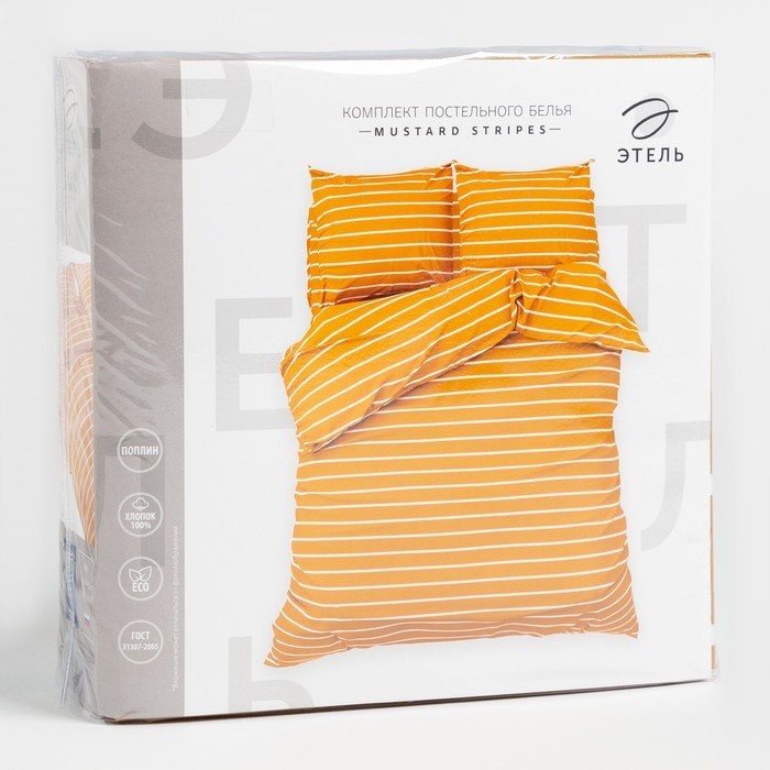 Постельное бельё Этель 1.5сп Mustard stripes 143х215см, 150х214см, 70х70см-2 шт, 100% хлопок, поплин