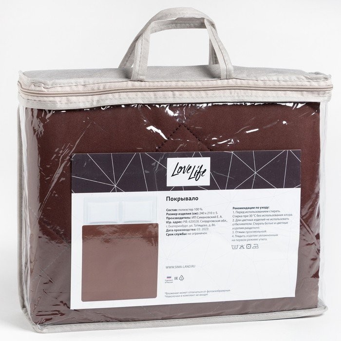 Покрывало LoveLife 2 сп 180×210±5 см, цвет темно-коричневый, микрофайбер, 100% п/э