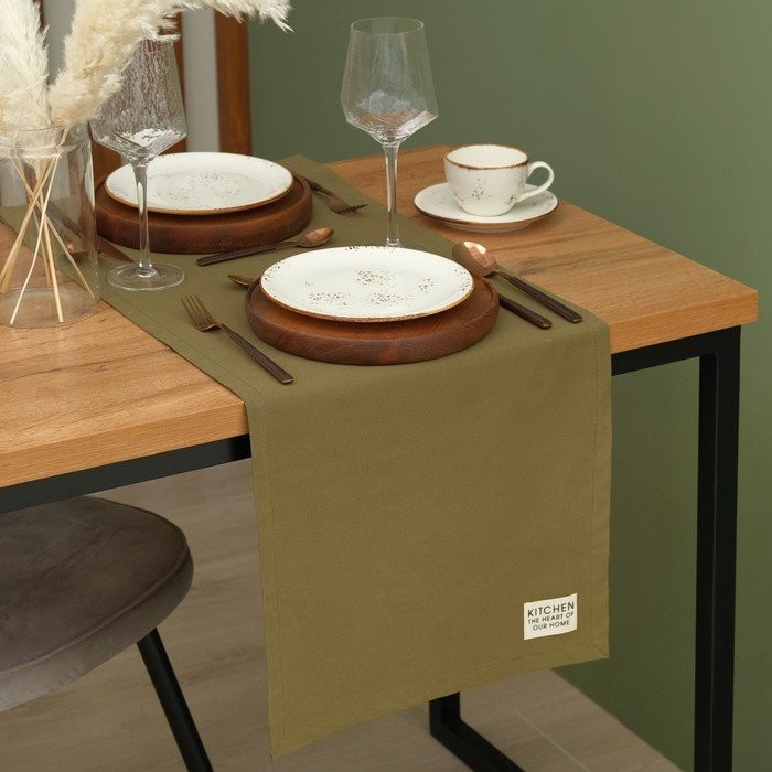 Дорожка на стол Этель Kitchen 40×150 см, цв. зелёный, 100% хл, саржа 220 г/м2