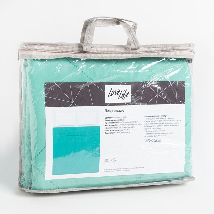 Покрывало LoveLife Евро Макси 240×210±5 см, цвет мятный, микрофайбер, 100% п/э