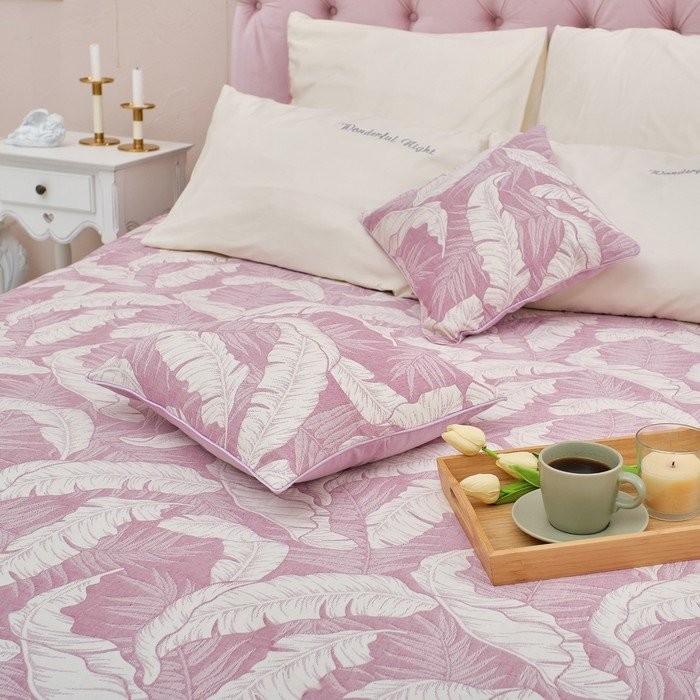 Покрывало хлопковое Этель «Перья» 220×240 см, цвет фиолетовый, 100% хлопок, 300гр/м2