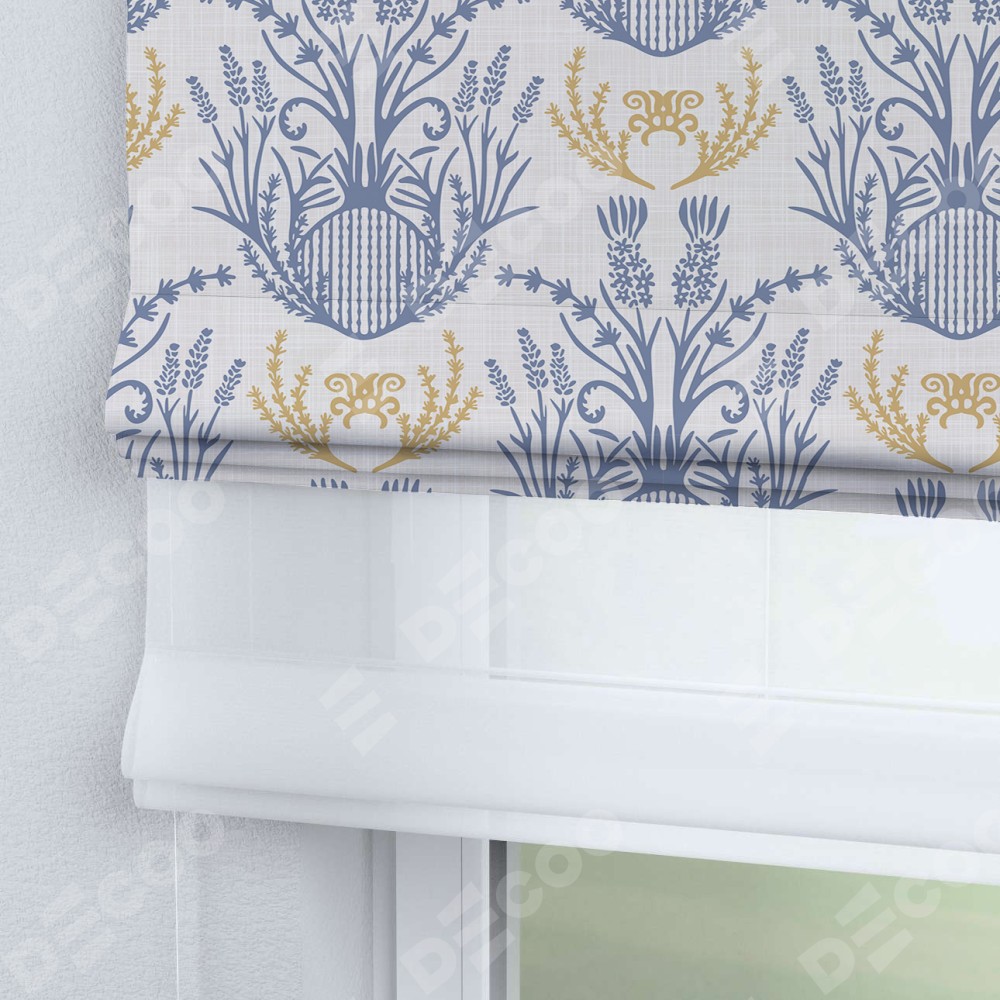 Римская штора день-ночь производителя «Cortin», используется для проёма, пошита из двух полотен, с лицевой блэкаут с нанесением сублимационной печати «Шикарная лаванда», вторая ткань тюль (по стандарту комплектуется тюль белого цвета артикул V-01). Имеет универсальный механизм и подходит для монтажа: на потолок, на стену и в нишу.