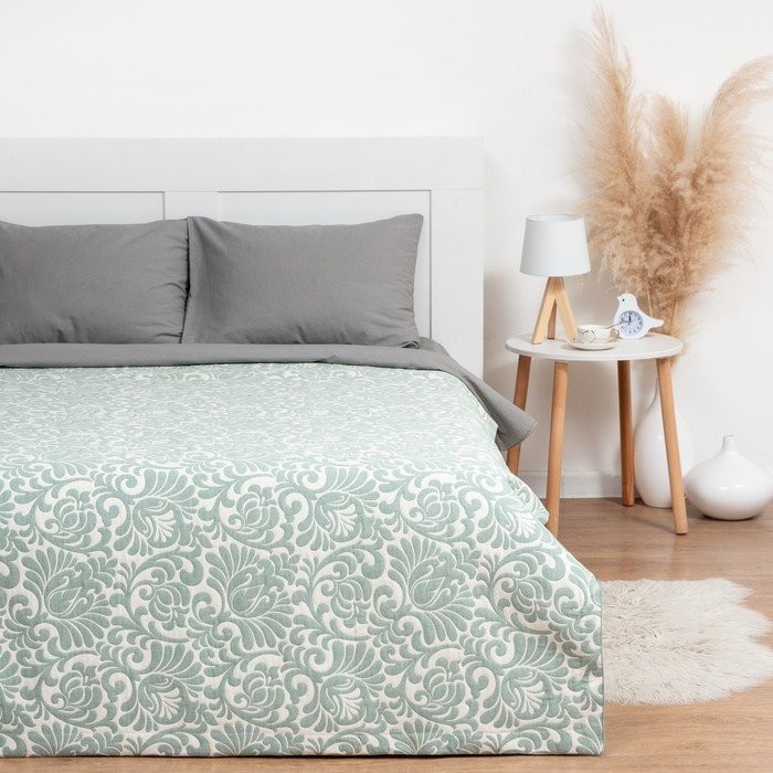 Покрывало хлопковое Этель «Узоры» 220×240 см, цвет зелёный, 100% хлопок, 300гр/м2