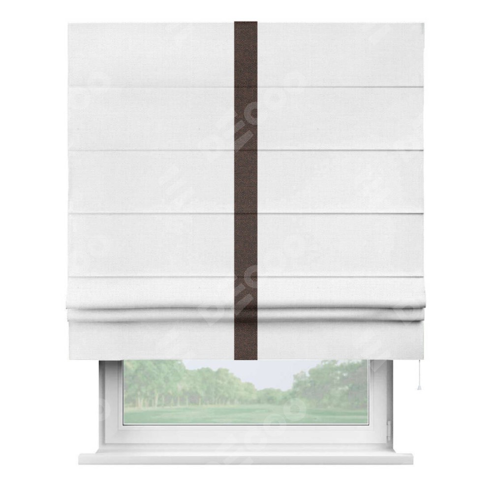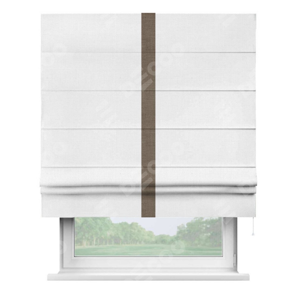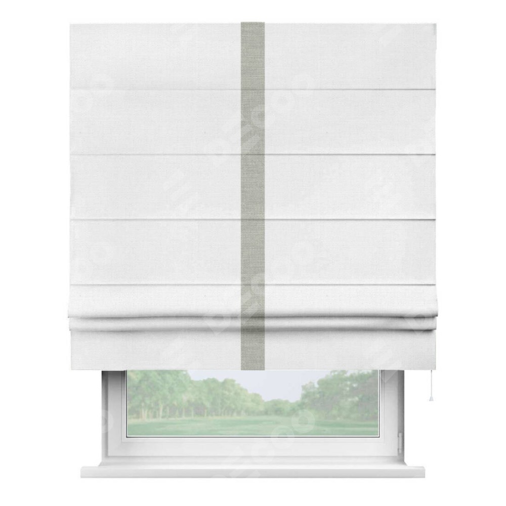 Римская штора «Кортин» с кантом Хайвэй, для проема, ткань лён белый