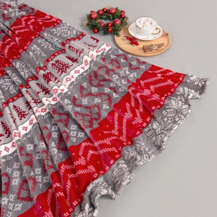 Плед LoveLife «Новогодний узор» 180×200 см,100% п/э, велсофт 280 гр/м2