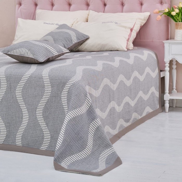 Покрывало хлопковое Этель «Волны» 200×240 см, цвет серый, 100% хлопок, 300гр/м2