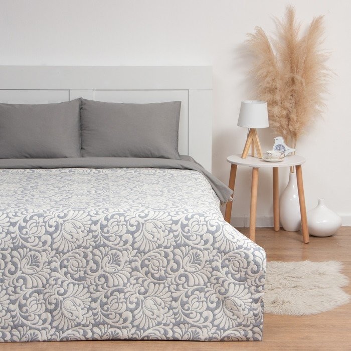 Покрывало хлопковое Этель «Узоры» 220×240 см, цвет серый, 100% хлопок, 300гр/м2