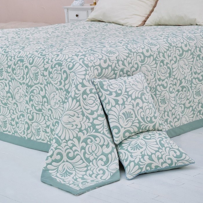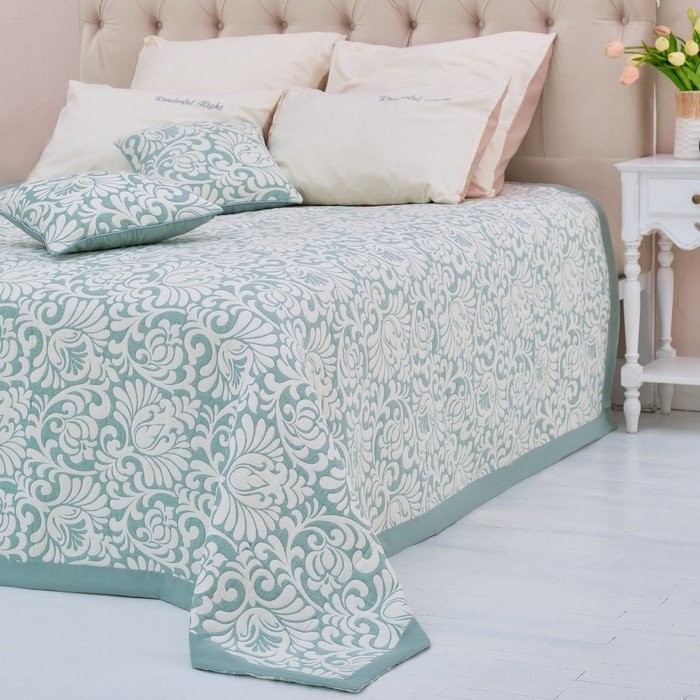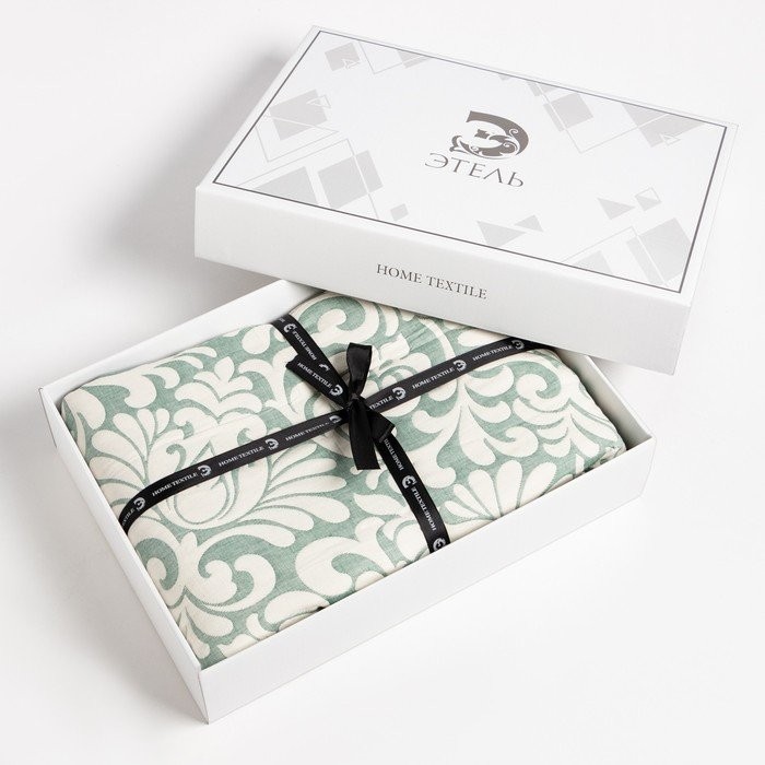 Покрывало хлопковое Этель «Узоры» 180×240 см, цвет зелёный, 100% хлопок, 300гр/м2