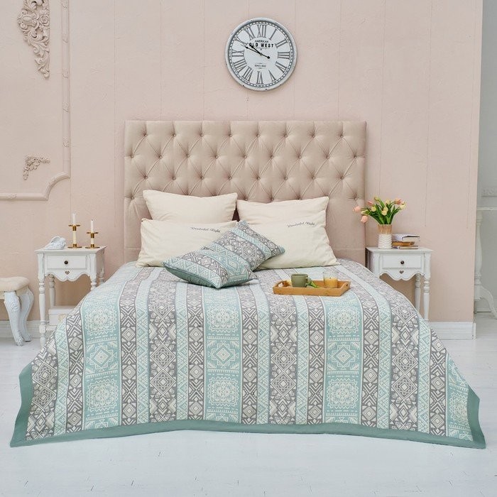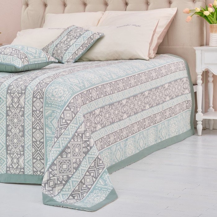 Покрывало хлопковое Этель «Инди» 180×240 см, цвет серо-зелёный, 100% хлопок, 300гр/м2