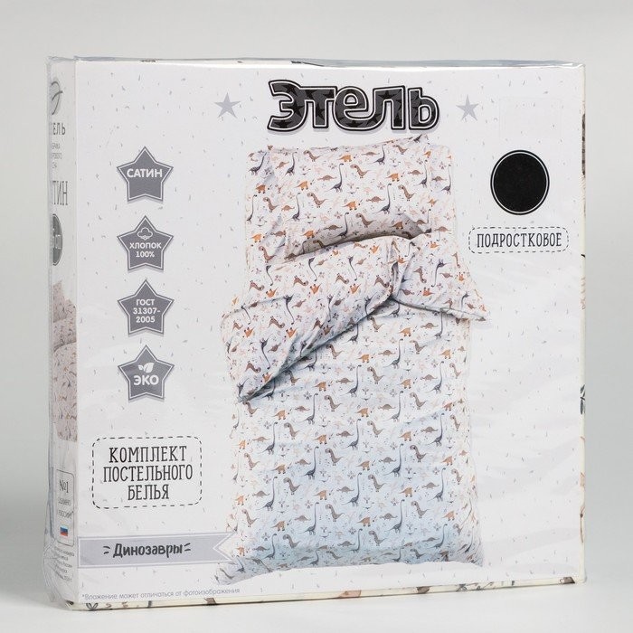 Постельное бельё Этель 1,5 сп «Динозавры» 143×215 см, 155×214 см, 50×70 см -1 шт, 100% хлопок, сатин