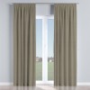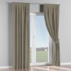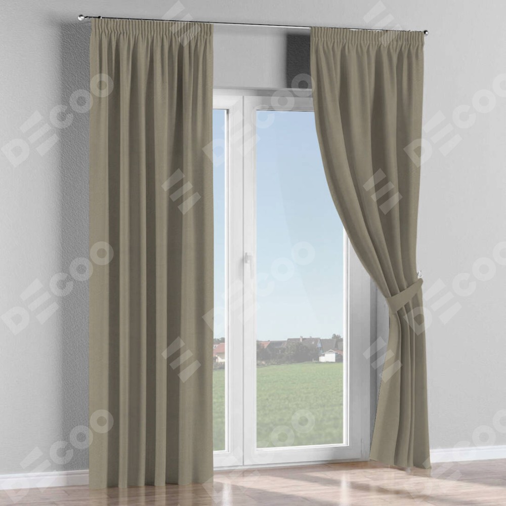 Комплект прямых штор, от производителя «Cortin», пошиты из ткани блэкаут однотонный бежево-серый, артикул ткани 00004. С изнаночной стороны в верхней части штор пристрачивается шторная лента с декоративными складками «Карандаш». Для создания элегантных складок прямые шторы шьются по стандарту с коэффициентом 1:2 (на 100 см. ширины проёма 200 см. ширины ткани).