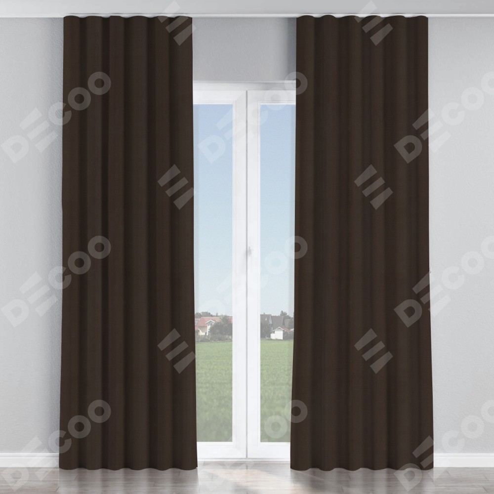 Комплект прямых штор, от производителя «Cortin», пошиты из ткани блэкаут однотонный венге, артикул ткани 88286. С изнаночной стороны в верхней части штор пристрачивается шторная лента с декоративными складками «Волна». Для создания элегантных складок прямые шторы шьются по стандарту с коэффициентом 1:2 (на 100 см. ширины проёма 200 см. ширины ткани).