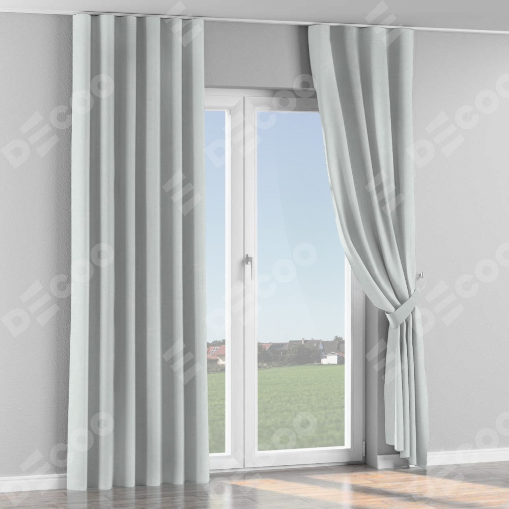 Комплект прямых штор, от производителя «Cortin», пошиты из ткани блэкаут однотонный дымчато-молочный, артикул ткани 88282. С изнаночной стороны в верхней части штор пристрачивается шторная лента с декоративными складками «Волна». Для создания элегантных складок прямые шторы шьются по стандарту с коэффициентом 1:2 (на 100 см. ширины проёма 200 см. ширины ткани).