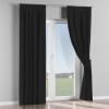 Комплект прямых штор, от производителя «Cortin», пошиты из ткани блэкаут однотонный черный, артикул ткани 79904. С изнаночной стороны в верхней части штор пристрачивается шторная лента с декоративными складками «Карандаш». Для создания элегантных складок прямые шторы шьются по стандарту с коэффициентом 1:2 (на 100 см. ширины проёма 200 см. ширины ткани).
