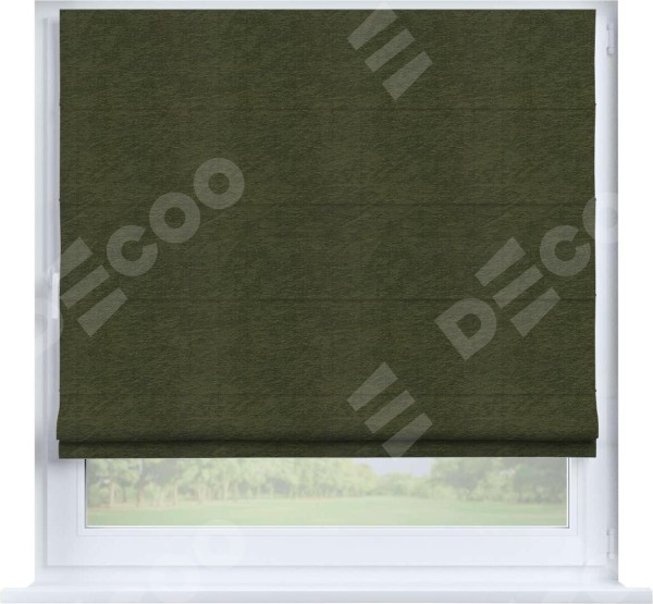 Римская штора производителя «Cortin», устанавливается на створку окна, пошита из ткани софт однотонный зелёный, артикул 33110. Штора шьётся по индивидуальным размерам, для данного типа римской шторы возможная ширина от 35 до 150 см., высота до 250 см.