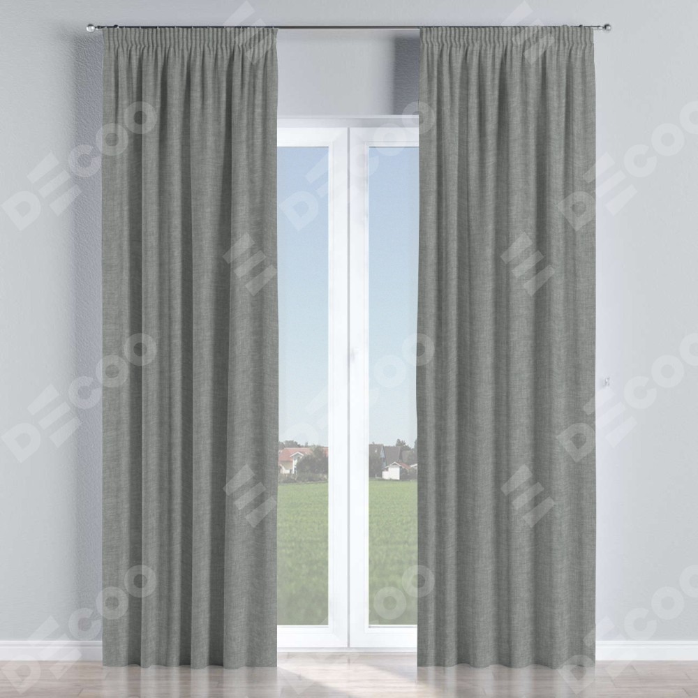 Комплект прямых штор, от производителя «Cortin», пошиты из ткани рогожка димаут тёмно-серый, артикул ткани 80418. С изнаночной стороны в верхней части штор пристрачивается шторная лента с декоративными складками «Карандаш». Для создания элегантных складок прямые шторы шьются по стандарту с коэффициентом 1:2 (на 100 см. ширины проёма 200 см. ширины ткани).