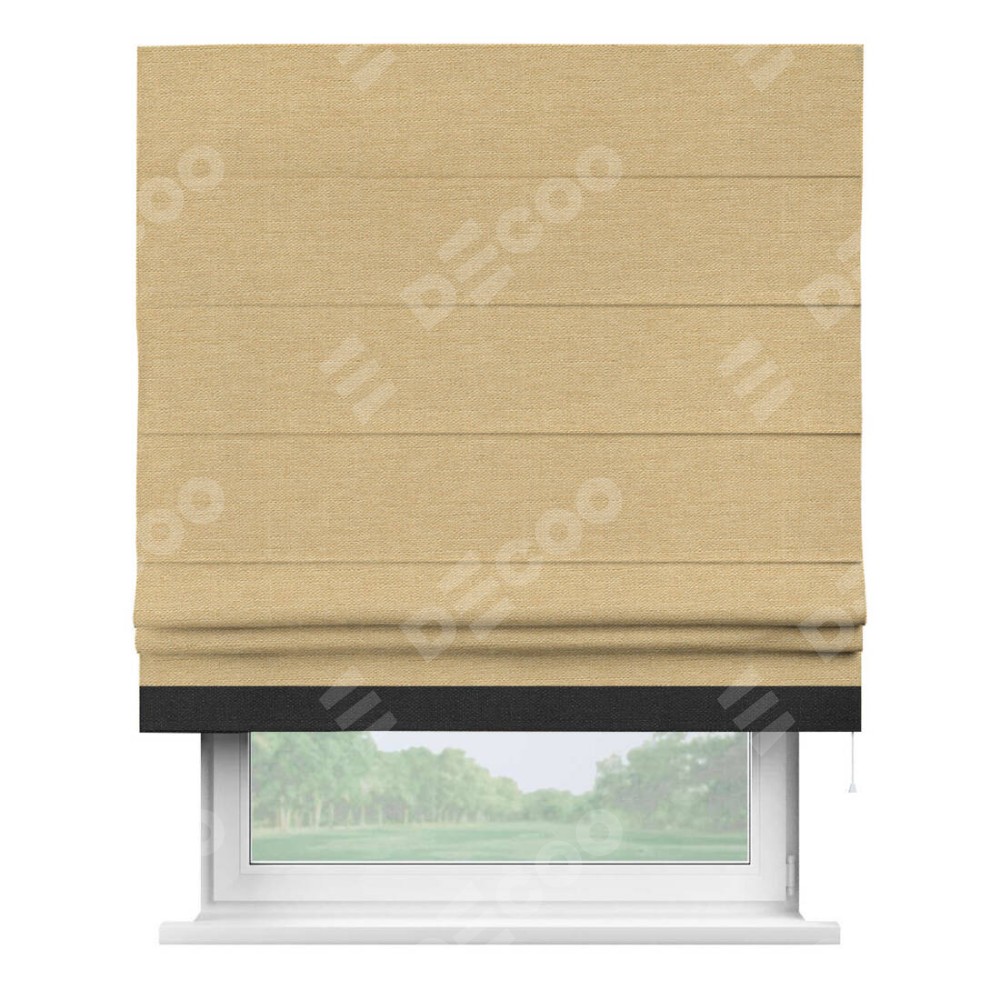 Римская штора производителя «Cortin», используется для проёма, пошита из ткани лён темно-бежевый, артикул 53433. Отделка шторы кантом «Джестер», ткань для канта используется из льна разной расцветки на выбор. Имеет универсальный механизм и подходит для монтажа: на потолок, на стену и в нишу.