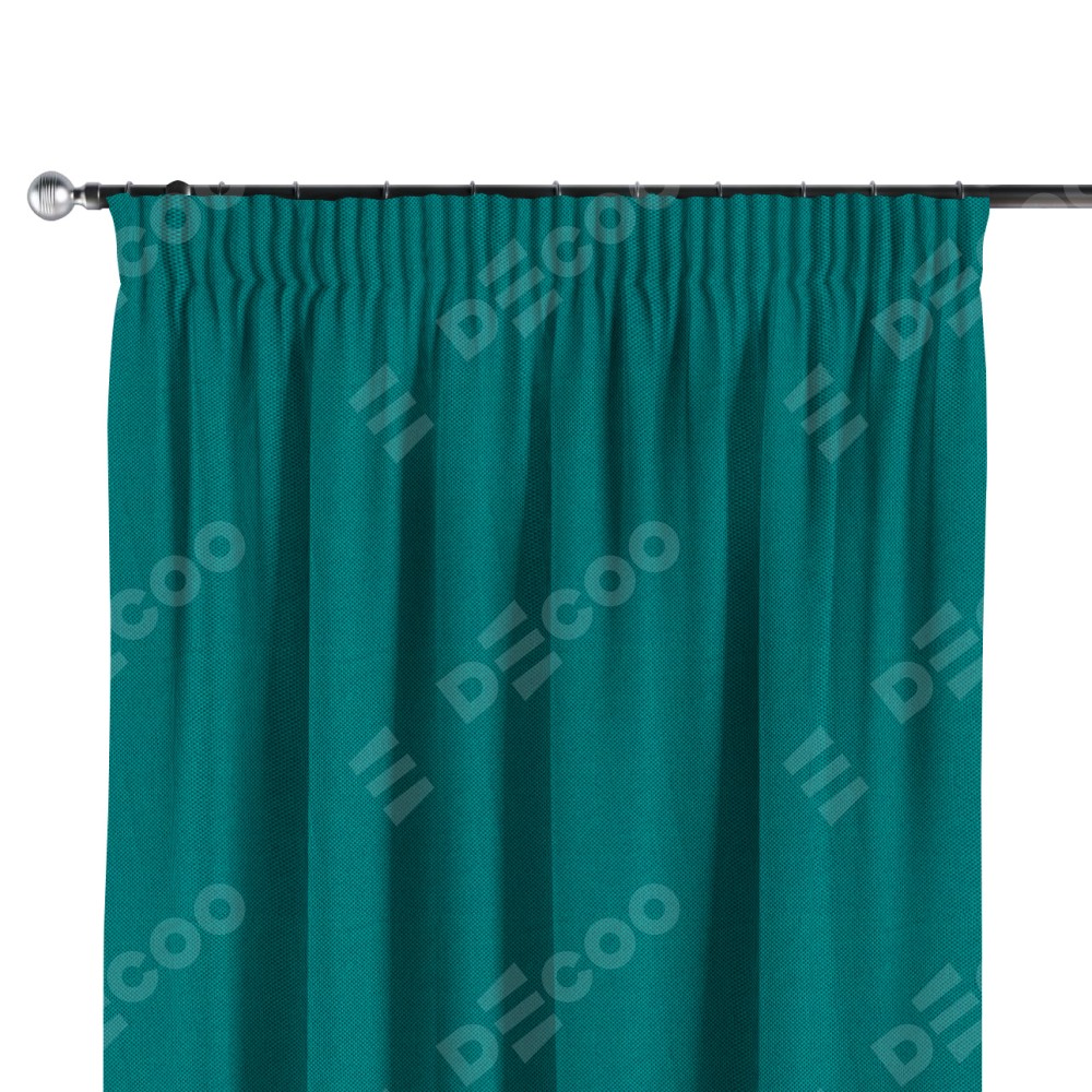 Комплект прямых штор, от производителя «Cortin», пошиты из ткани лён димаут тёмно-бирюзовый, артикул ткани 318. С изнаночной стороны в верхней части штор пристрачивается шторная лента с декоративными складками «Карандаш». Для создания элегантных складок прямые шторы шьются по стандарту с коэффициентом 1:2 (на 100 см. ширины проёма 200 см. ширины ткани).