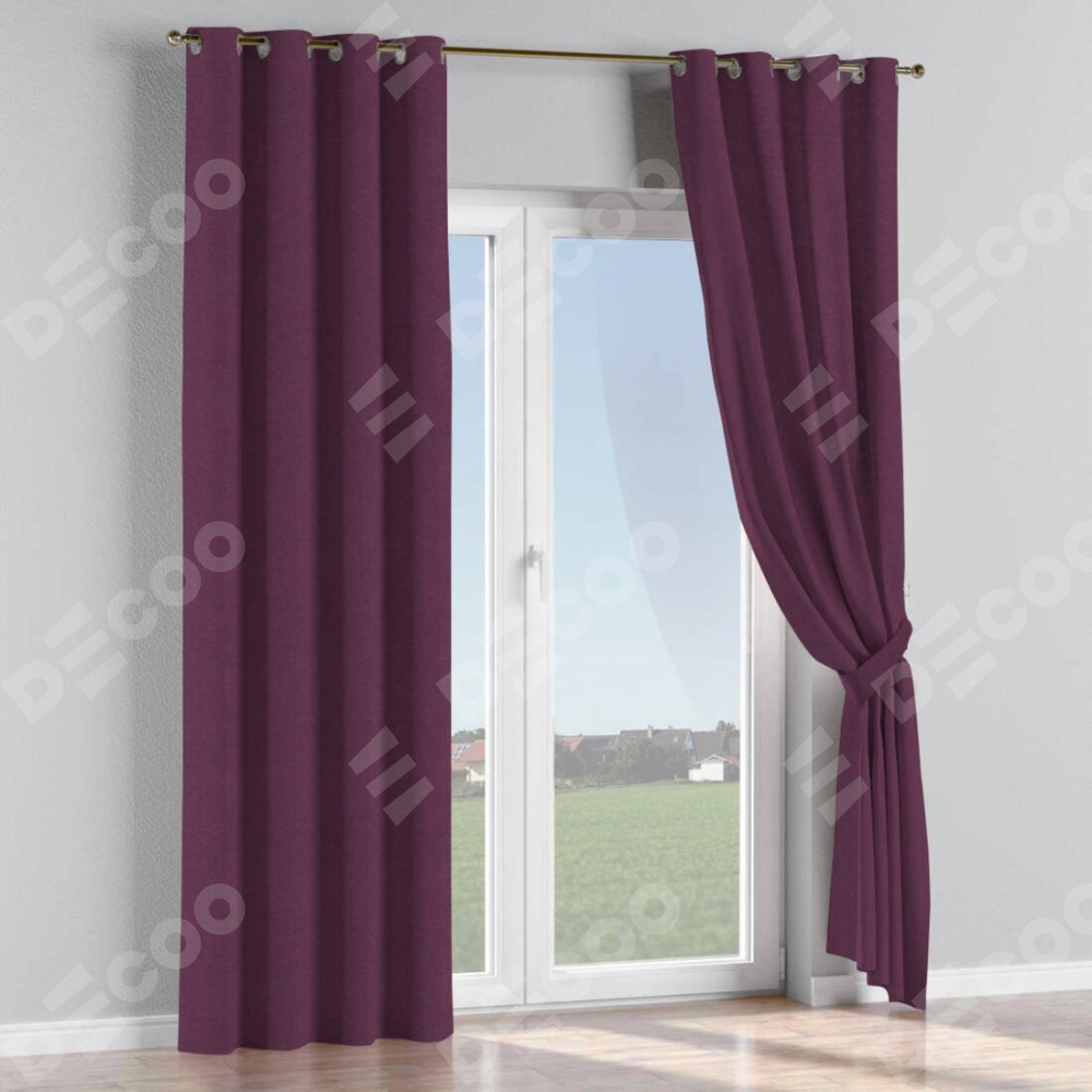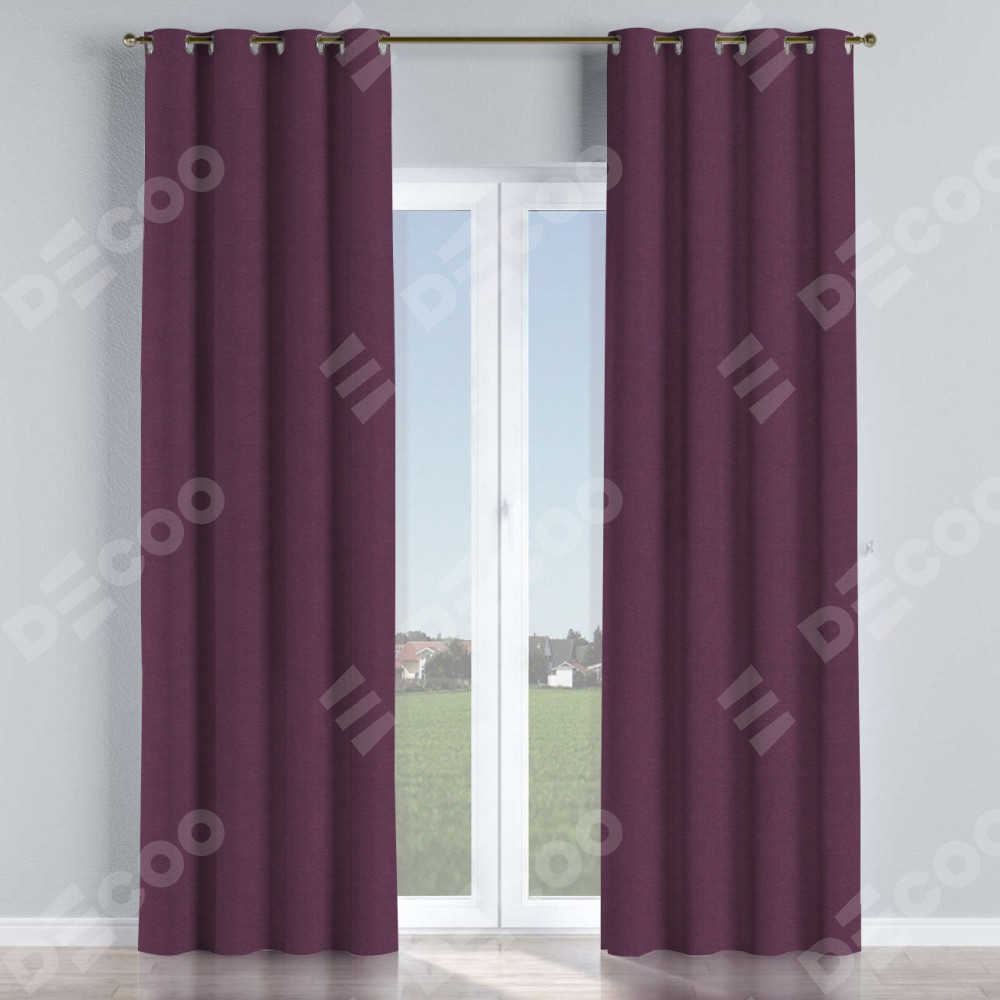 Комплект прямых штор, от производителя «Cortin», пошиты из ткани лён димаут фиолетовый, артикул ткани 8817. Данная модель пошита на люверсах, комплектуется на выбор круглым карнизом и подходит для монтажа на стену или потолок. Прямые шторы на люверсах шьются по стандарту с коэффициентом 1/2 (на 100 см. ширины проёма 200 см. ширины ткани), отличительным преимуществом данной модели является простой способ монтажа. Достаточно повесить ее на трубу и штора готова!