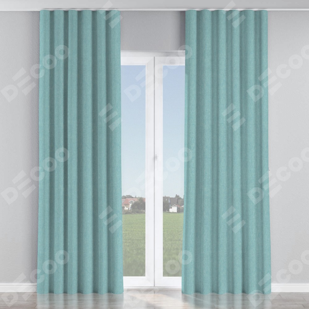 Комплект прямых штор, от производителя «Cortin», пошиты из ткани твид блэкаут небесно-голубой, артикул ткани 21578. С изнаночной стороны в верхней части штор пристрачивается шторная лента с декоративными складками «Волна». Для создания элегантных складок прямые шторы шьются по стандарту с коэффициентом 1:2 (на 100 см. ширины проёма 200 см. ширины ткани).