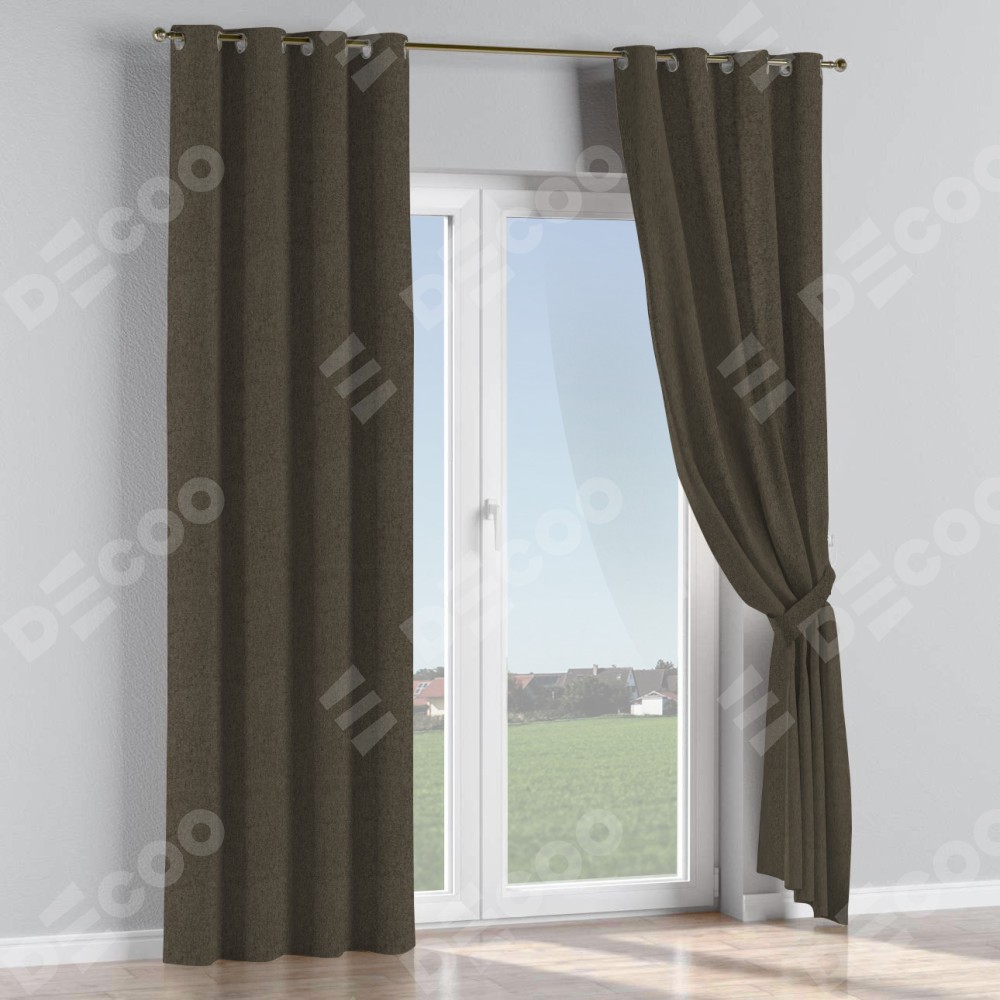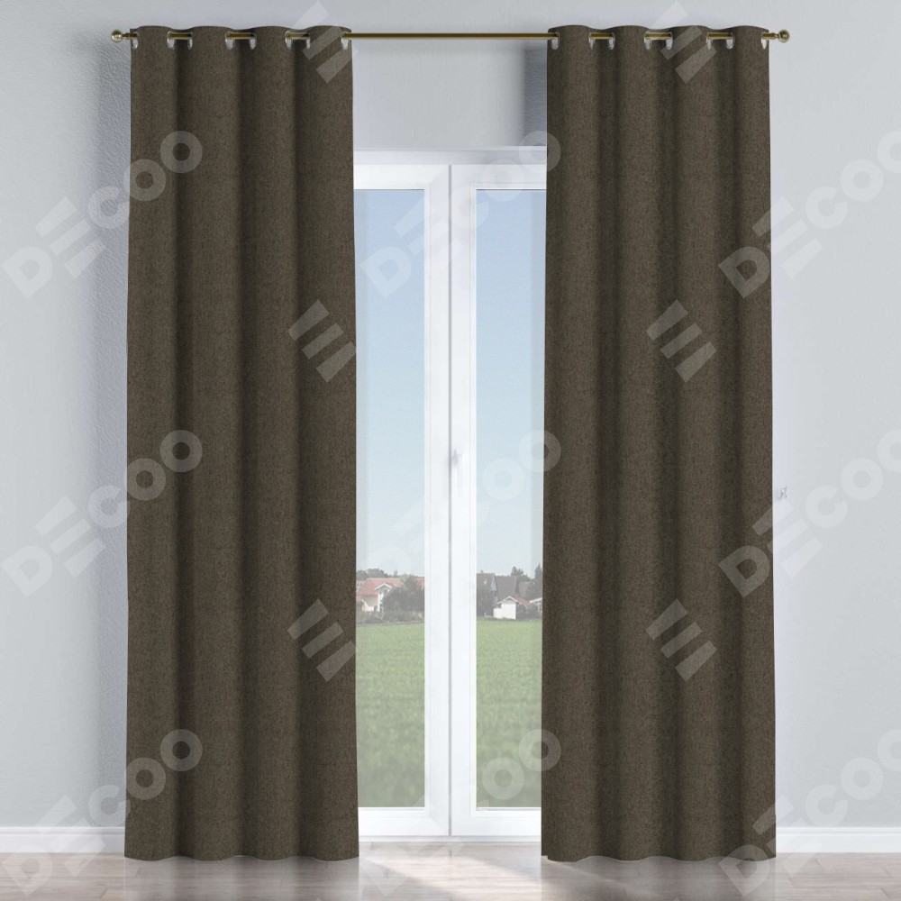 Комплект штор на люверсах твид блэкаут тёмно-коричневый