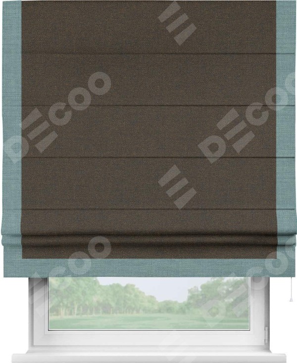 Римская штора «Кортин» с кантом Виктория, для проема, ткань лён темно-коричневый