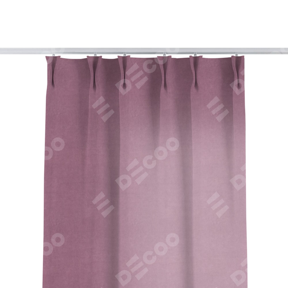Комплект прямых штор, от производителя «Cortin», пошиты из ткани вельвет лиловый, артикул ткани 17752. С изнаночной стороны в верхней части штор пристрачивается шторная лента с декоративными складками «Кустик». Для создания элегантных складок прямые шторы шьются по стандарту с коэффициентом 1:2 (на 100 см. ширины проёма 200 см. ширины ткани).