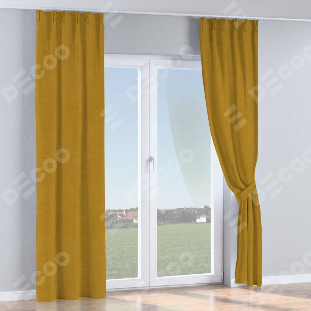 Комплект прямых штор, от производителя «Cortin», пошиты из ткани вельвет светло-коричневый, артикул ткани 4973. С изнаночной стороны в верхней части штор пристрачивается шторная лента с декоративными складками «Кустик». Для создания элегантных складок прямые шторы шьются по стандарту с коэффициентом 1:2 (на 100 см. ширины проёма 200 см. ширины ткани).