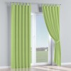Комплект прямых штор, от производителя «Cortin», пошиты из ткани лён зелёный, артикул ткани 85906. Данная модель пошита на петлях, комплектуется на выбор круглым карнизом и подходит для монтажа на стену или потолок. Прямые шторы на петлях шьются по стандарту с коэффициентом 1/2 (на 100 см. ширины проёма 200 см. ширины ткани), отличительным преимуществом данной модели является простой способ монтажа. Достаточно повесить ее на трубу и штора готова!