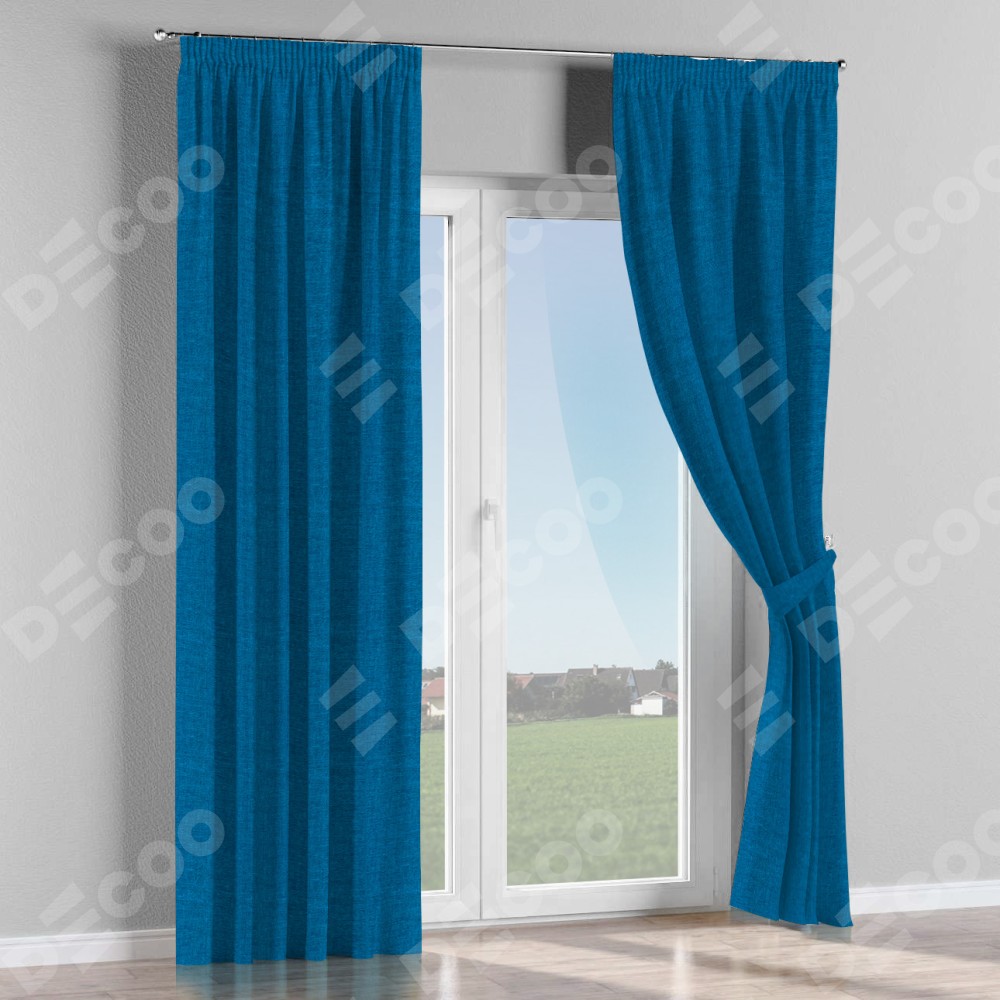 Комплект прямых штор, от производителя «Cortin», пошиты из ткани лён синий, артикул ткани 63742. С изнаночной стороны в верхней части штор пристрачивается шторная лента с декоративными складками «Карандаш». Для создания элегантных складок прямые шторы шьются по стандарту с коэффициентом 1:2 (на 100 см. ширины проёма 200 см. ширины ткани).