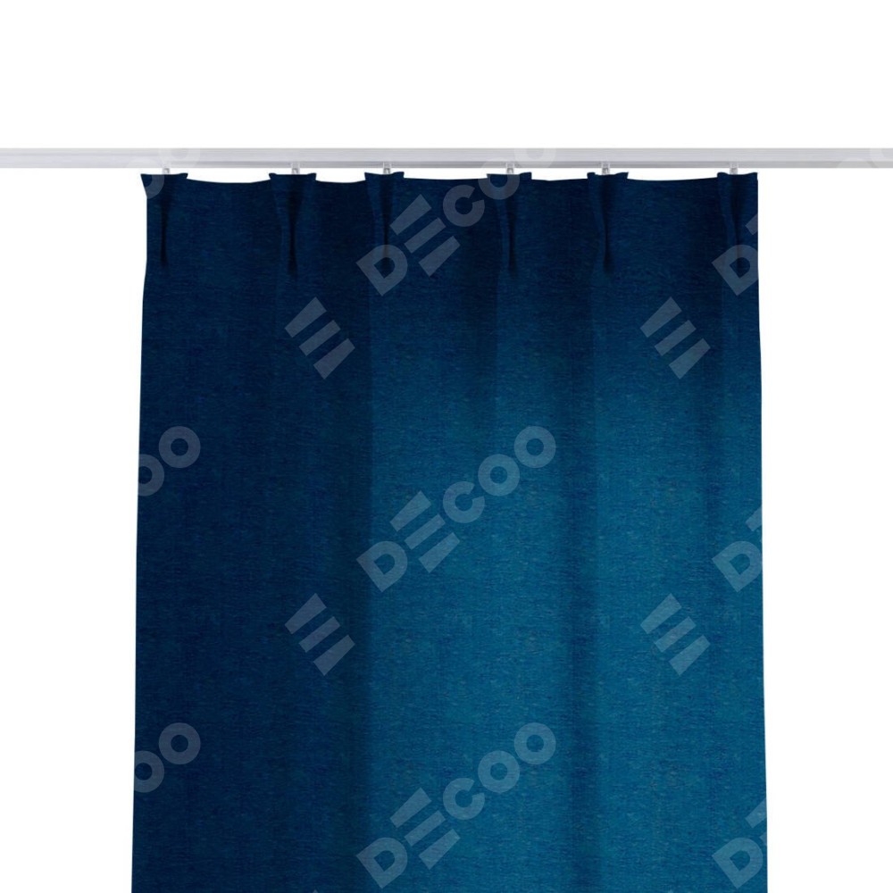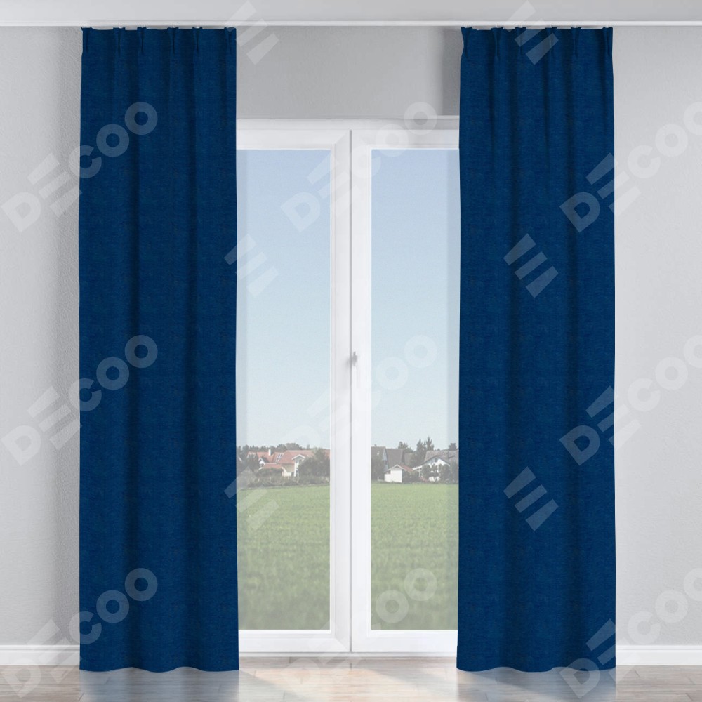 Комплект прямых штор, от производителя «Cortin», пошиты из ткани софт однотонный синий, артикул ткани 42937. С изнаночной стороны в верхней части штор пристрачивается шторная лента с декоративными складками «Кустик». Для создания элегантных складок прямые шторы шьются по стандарту с коэффициентом 1:2 (на 100 см. ширины проёма 200 см. ширины ткани).