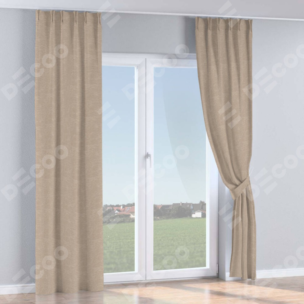 Комплект прямых штор, от производителя «Cortin», пошиты из ткани софт однотонный тёмно-бежевый, артикул ткани 1640. С изнаночной стороны в верхней части штор пристрачивается шторная лента с декоративными складками «Кустик». Для создания элегантных складок прямые шторы шьются по стандарту с коэффициентом 1:2 (на 100 см. ширины проёма 200 см. ширины ткани).