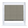 Римская штора кассетного типа, производителя «Cortin», устанавливается только на пластиковые окна и прилегает к стеклопакету, пошита из ткани блэкаут однотонный бежево-серый, артикул 00004.