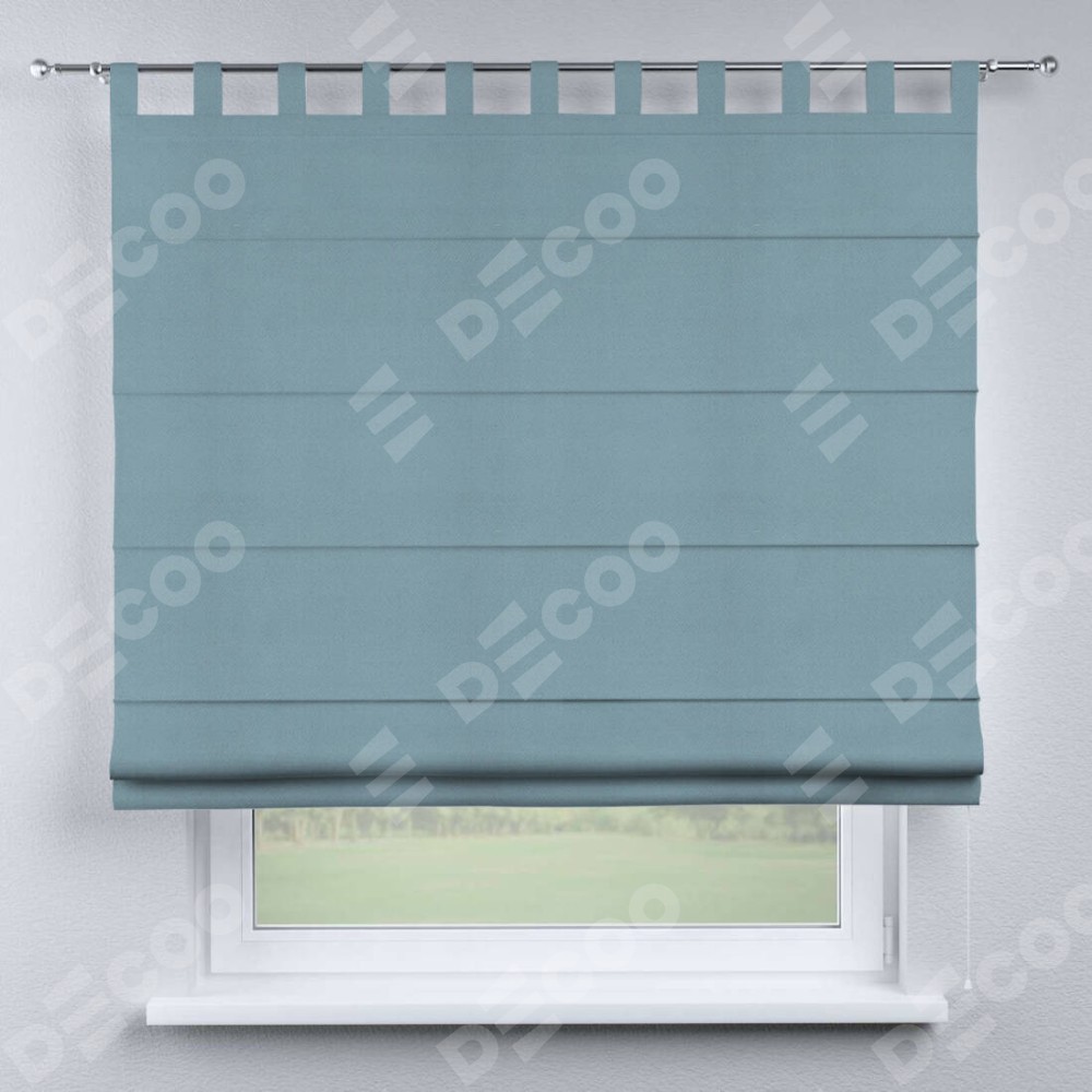 Римская штора производителя «Cortin», используется для проёма, пошита из ткани блэкаут однотонный серо-голубой, артикул ткани 29327. Данная модель пошита на петлях, комплектуется на выбор круглым карнизом и подходит для монтажа на стену. Римская штора на петлях имеет простую систему регулировки высоты, отличительным преимуществом данной модели является простой способ монтажа. Достаточно повесить ее на трубу и штора готова!
