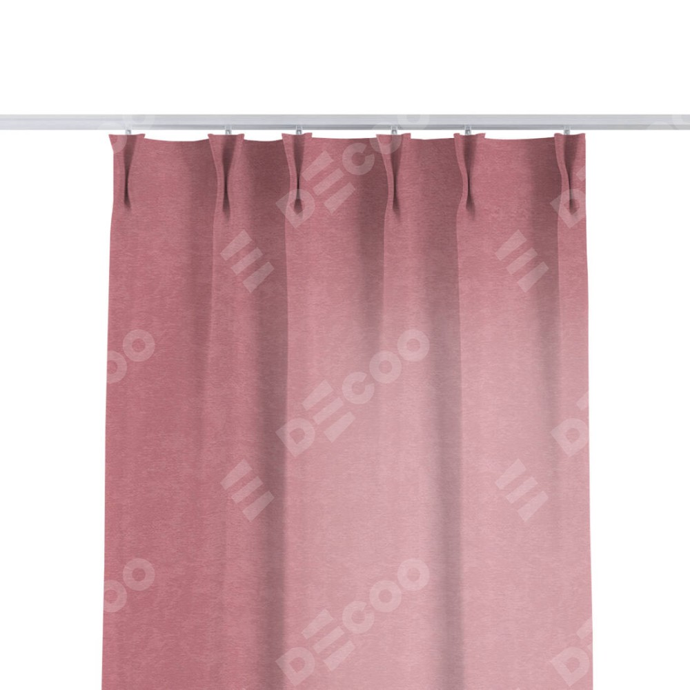 Комплект прямых штор, от производителя «Cortin», пошиты из ткани софт однотонный розовый, артикул ткани 42926. С изнаночной стороны в верхней части штор пристрачивается шторная лента с декоративными складками «Кустик». Для создания элегантных складок прямые шторы шьются по стандарту с коэффициентом 1:2 (на 100 см. ширины проёма 200 см. ширины ткани).