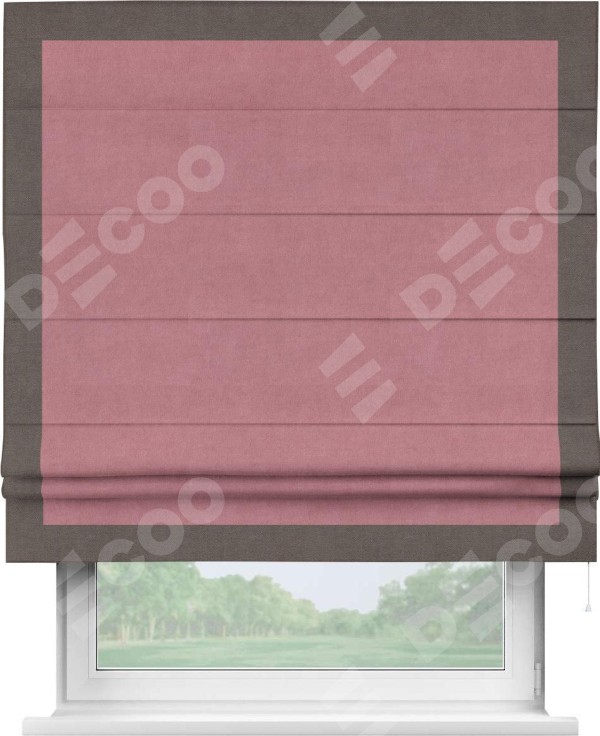 Римская штора «Кортин» с кантом Чесс, для проема, ткань вельвет брусника