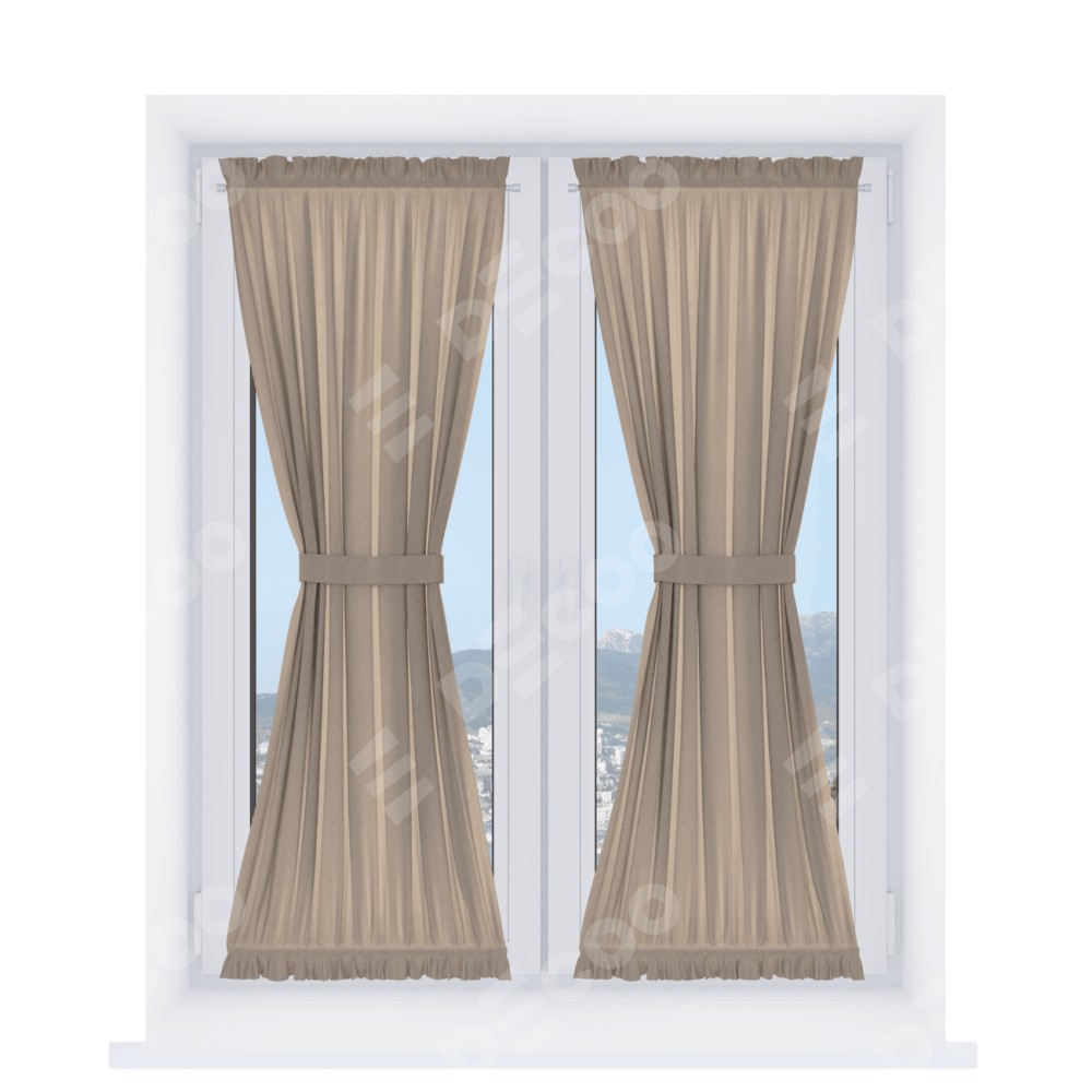Штора «Песочные часы» производителя «Cortin», используется для створок окон и дверей, пошита из ткани лён димаут светло-бежевый, артикул ткани 00002.
