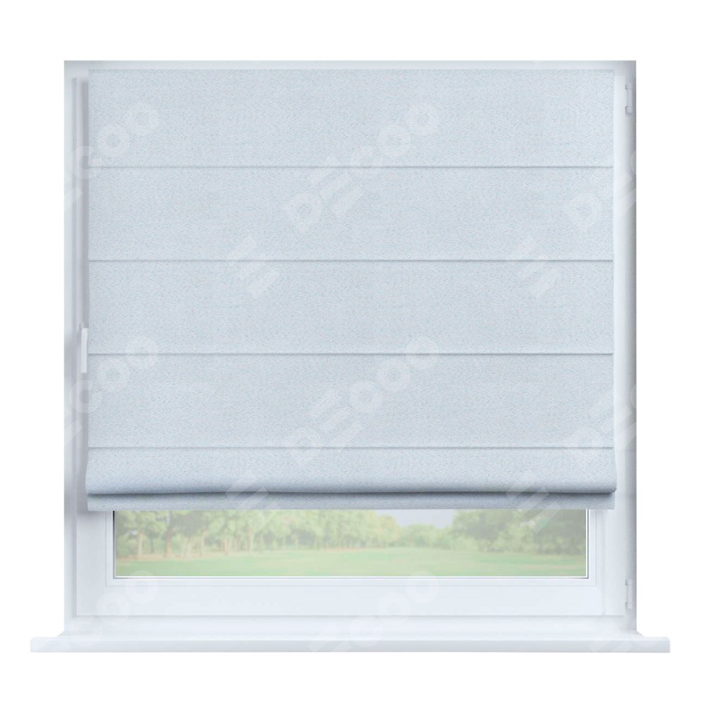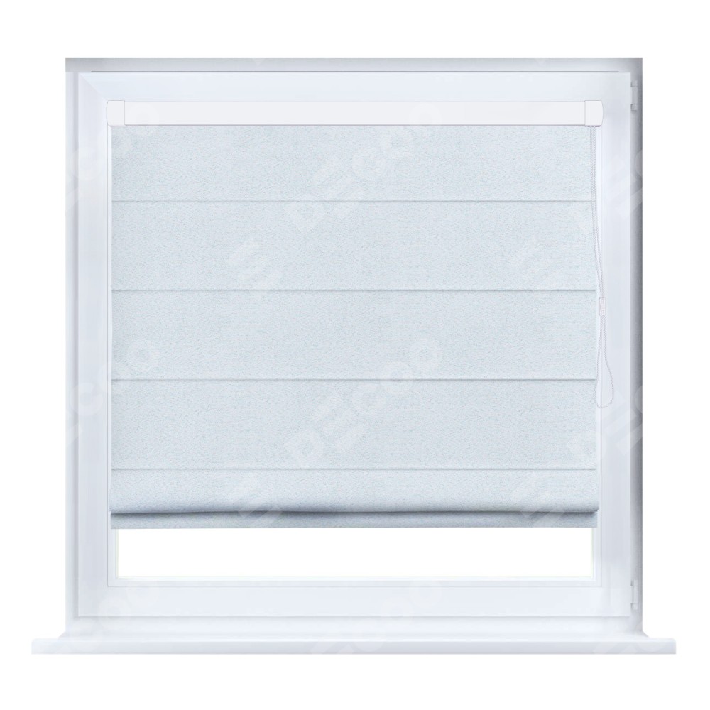 Римская штора производителя «Cortin», устанавливается на створку окна, пошита из ткани блэкаут однотонный дымчато-белый, артикул 101. Штора шьётся по индивидуальным размерам, для данного типа римской шторы возможная ширина от 35 до 150 см., высота до 250 см.