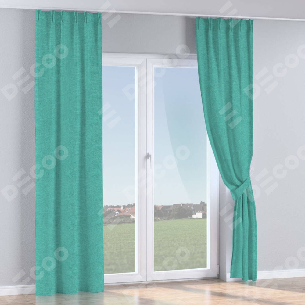 Комплект прямых штор, от производителя «Cortin», пошиты из ткани лён изумрудный, артикул ткани 85908. С изнаночной стороны в верхней части штор пристрачивается шторная лента с декоративными складками «Кустик». Для создания элегантных складок прямые шторы шьются по стандарту с коэффициентом 1:2 (на 100 см. ширины проёма 200 см. ширины ткани).