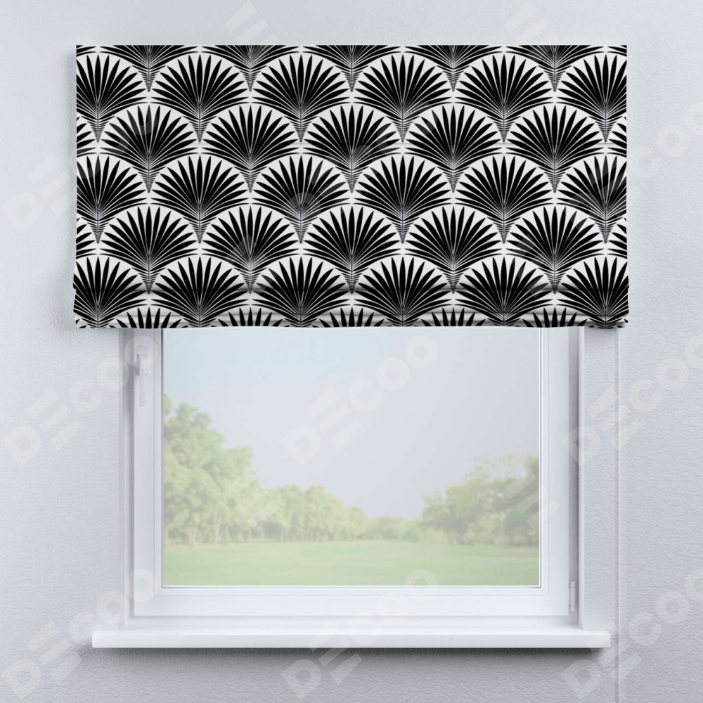 Римская штора «Кортин» для проема «Арт-деко листья черный»