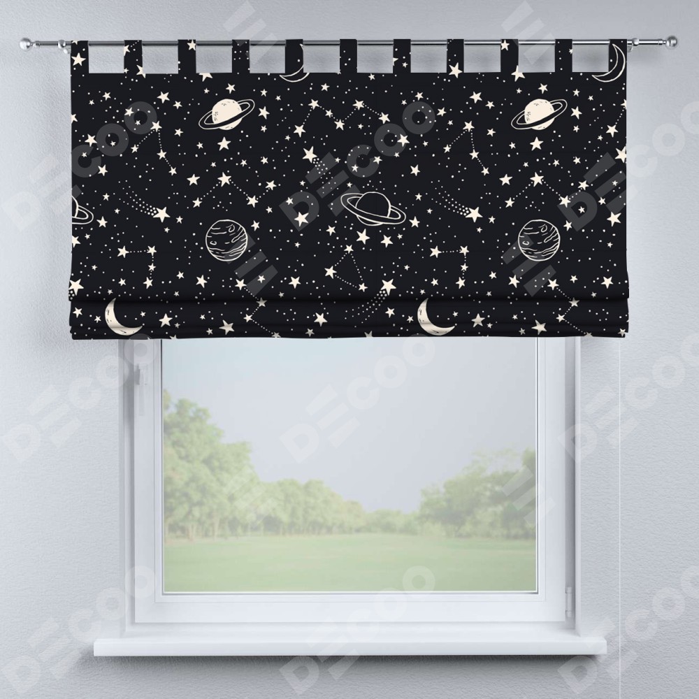 Римская штора производителя «Cortin», используется для проёма, пошита из ткани блэкаут с нанесением сублимационной печати «Глубокий космос». Данная модель пошита на петлях, комплектуется на выбор круглым карнизом и подходит для монтажа на стену. Римская штора на петлях имеет простую систему регулировки высоты, отличительным преимуществом данной модели является простой способ монтажа. Достаточно повесить ее на трубу и штора готова!