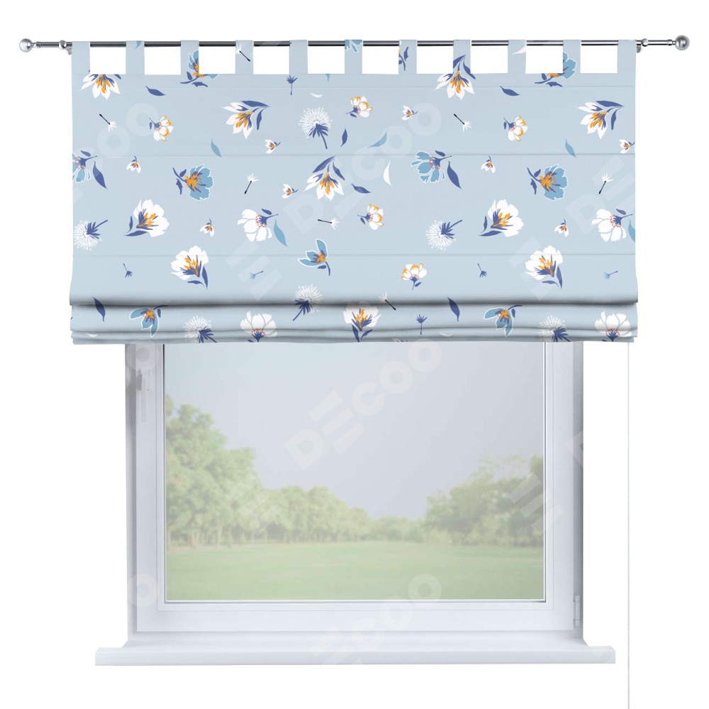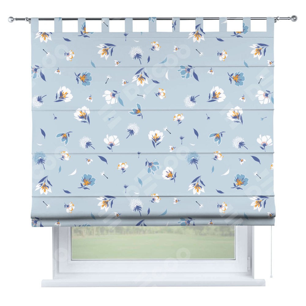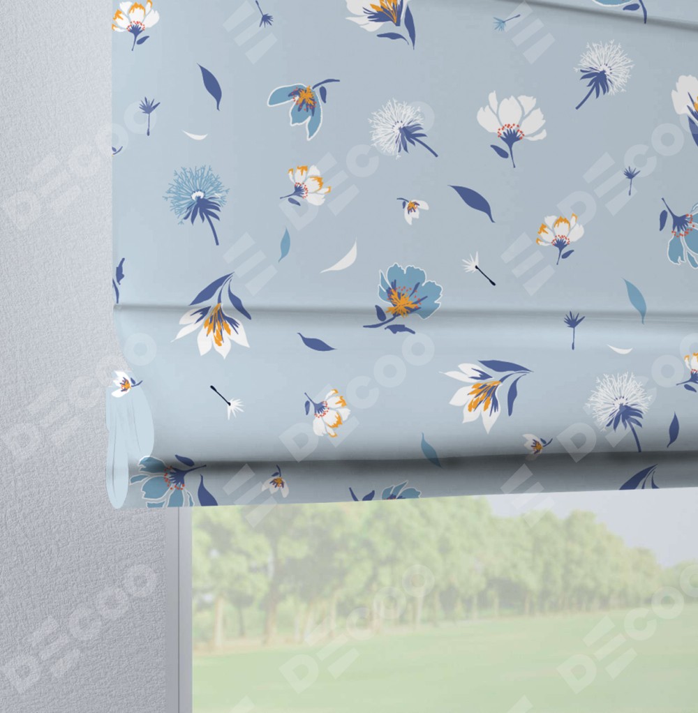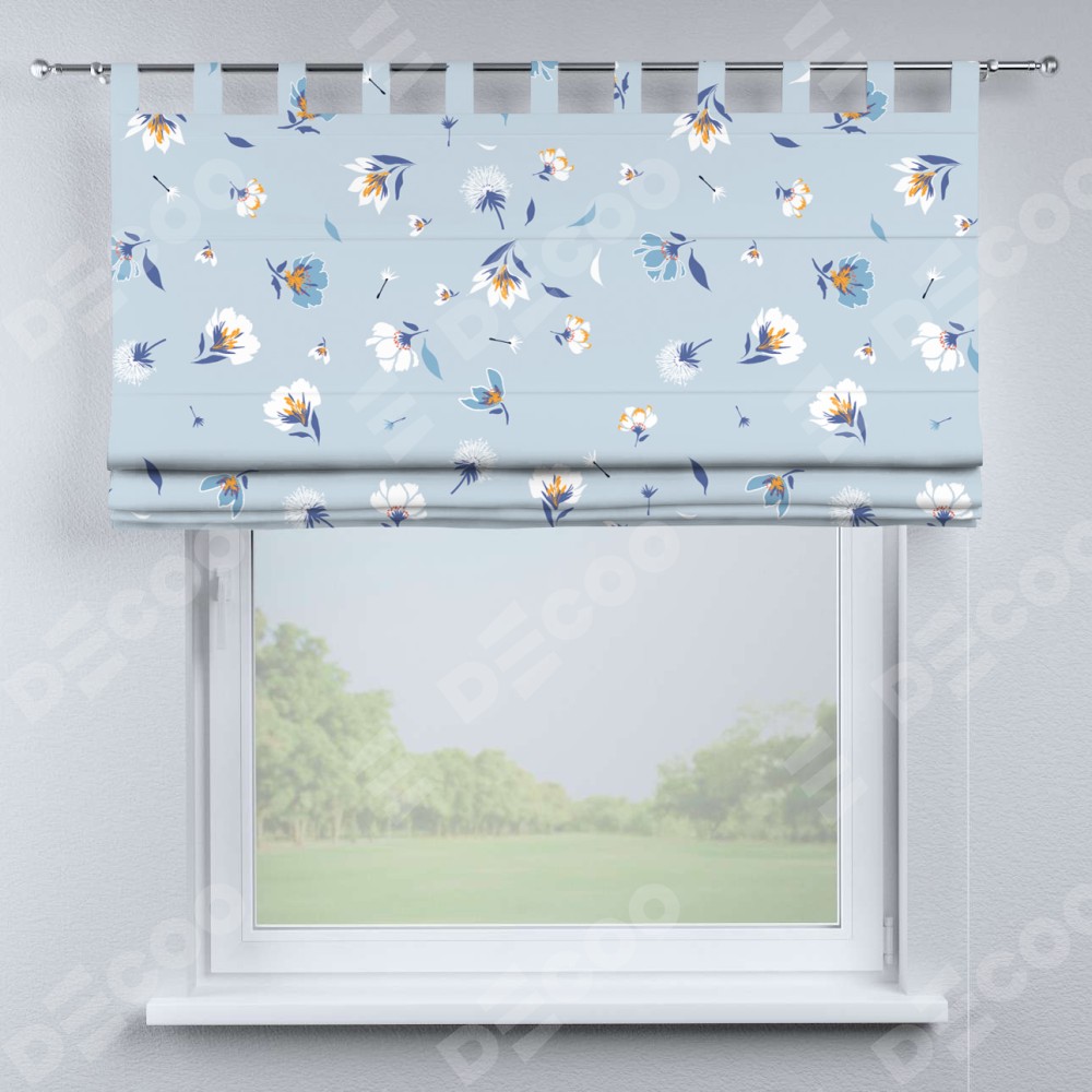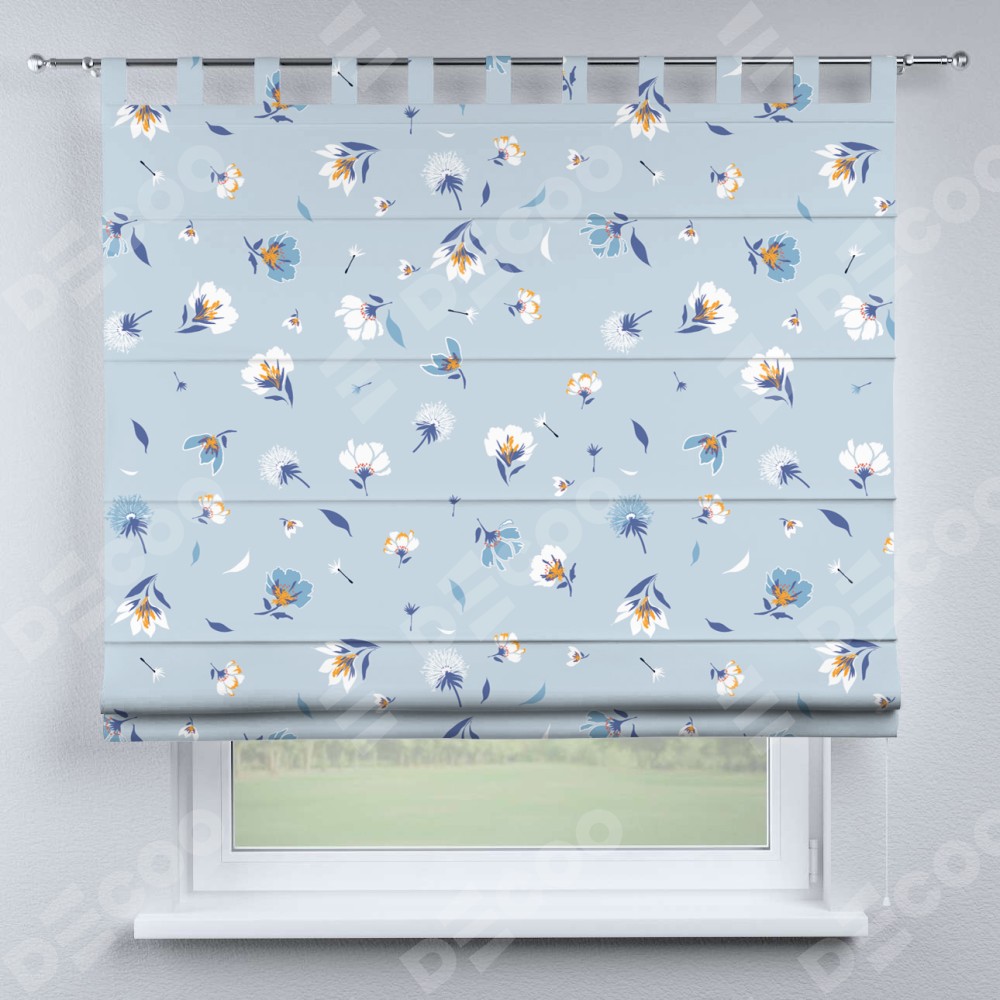 Римская штора производителя «Cortin», используется для проёма, пошита из ткани блэкаут с нанесением сублимационной печати «Голубые цветы». Данная модель пошита на петлях, комплектуется на выбор круглым карнизом и подходит для монтажа на стену. Римская штора на петлях имеет простую систему регулировки высоты, отличительным преимуществом данной модели является простой способ монтажа. Достаточно повесить ее на трубу и штора готова!
