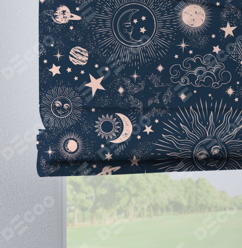 Римская штора на петлях «Звёзды и планеты»