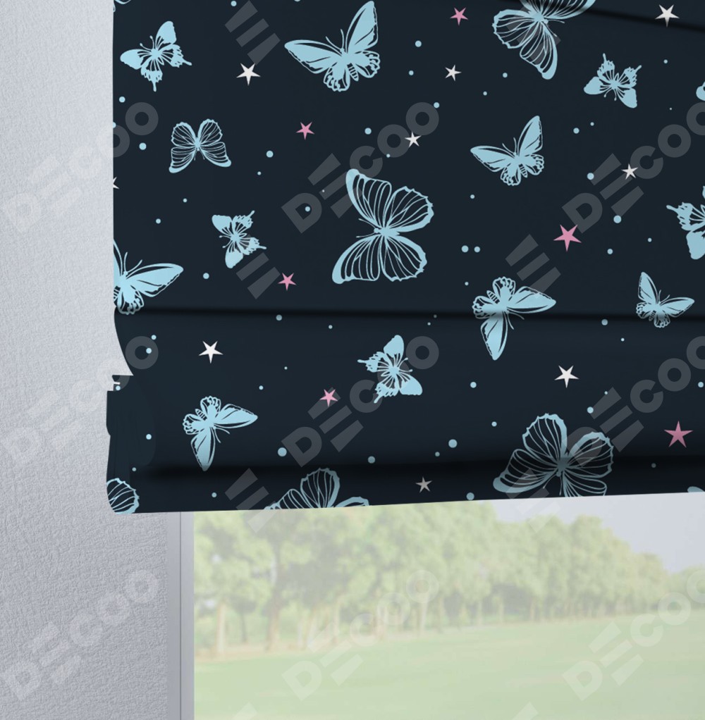 Римская штора производителя «Cortin», используется для проёма, пошита из ткани блэкаут с нанесением сублимационной печати «Неоновые бабочки». Данная модель пошита на петлях, комплектуется на выбор круглым карнизом и подходит для монтажа на стену. Римская штора на петлях имеет простую систему регулировки высоты, отличительным преимуществом данной модели является простой способ монтажа. Достаточно повесить ее на трубу и штора готова!